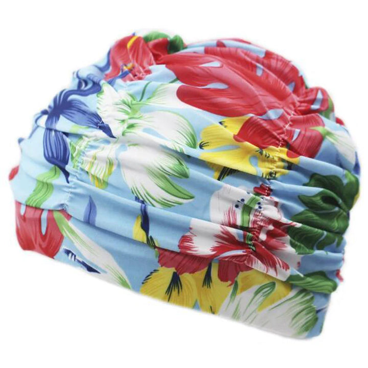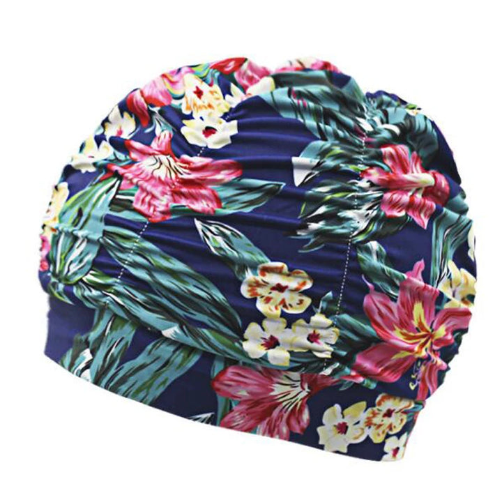 قبعة سباحة مطبوعة ببتلات مطوية - النقاط الرئيسية: