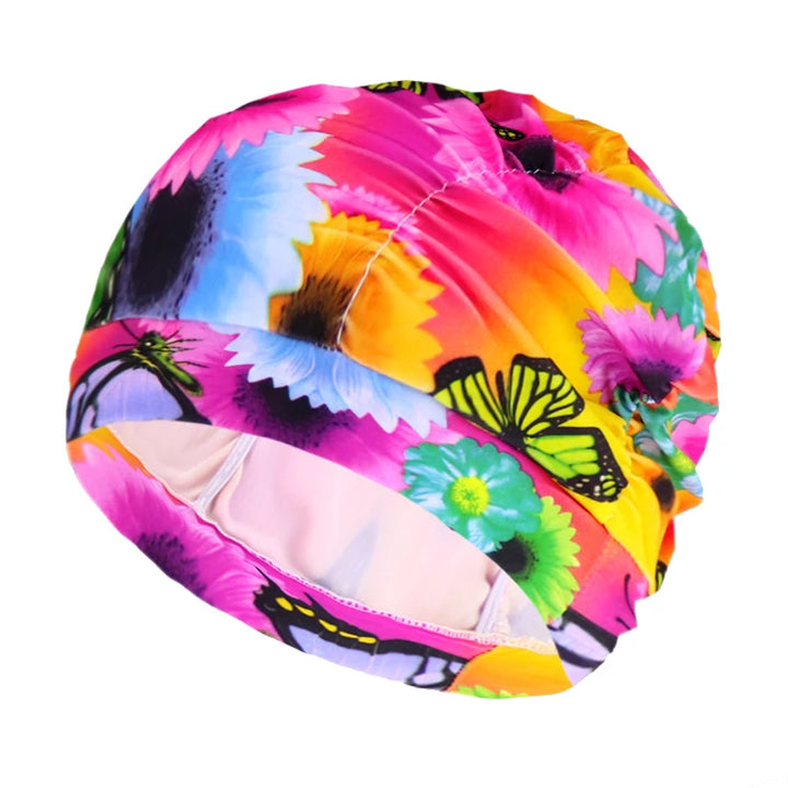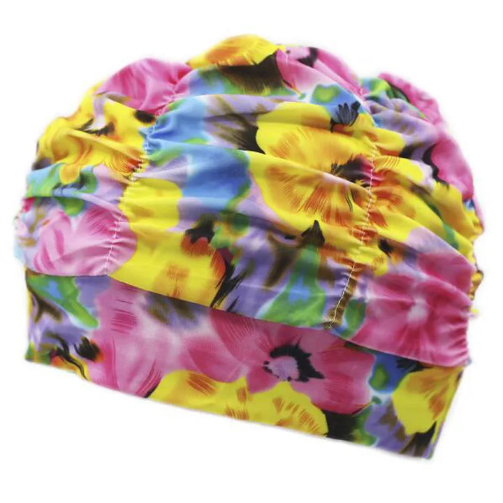 قبعة سباحة من القماش بطبعات بتلات مطوية مقاس كبير