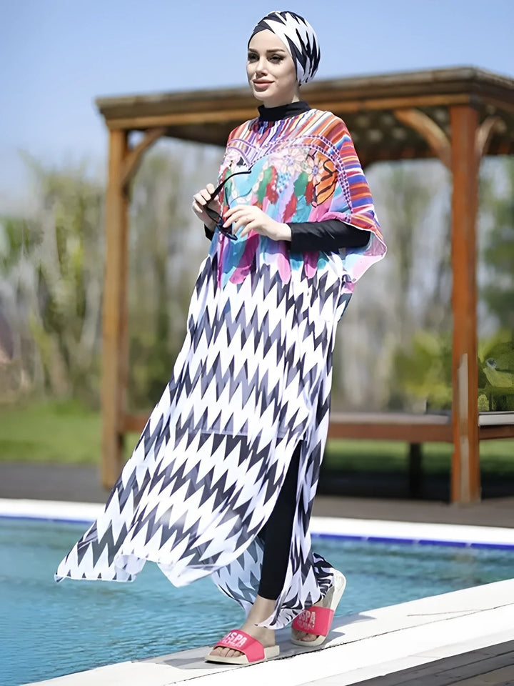 نقدم لك طقم البوركيني الرائع Tropical Bloom - مزيج متناغم من الموضة والتواضع للمرأة المسلمة العصرية النشطة. يتوفر البوركيني Tropical Bloom في 4 أو 3 قطع، ويعيد هذا الطقم تعريف ملابس السباحة، ويوفر التغطية والأناقة التي تناسب شخصيتك.