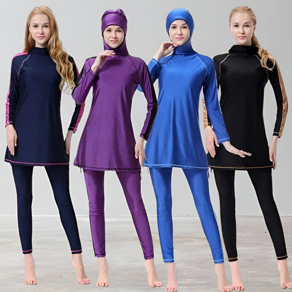 Belle Modest Full Coverage Swimwear 3pcs Burkini Set Belle Modest Swimsuit. The adjustable straps, color-block design, and body-hugging fit make a perfect combination of comfort and style. Elevate your beach...