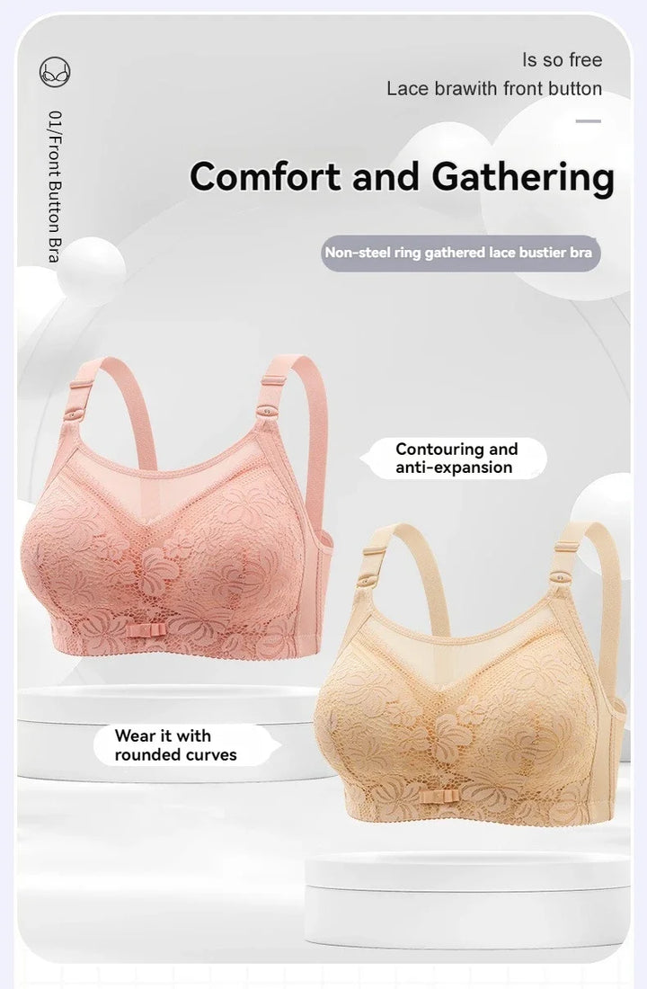 Beige lace bra on a model with 'Skin color'