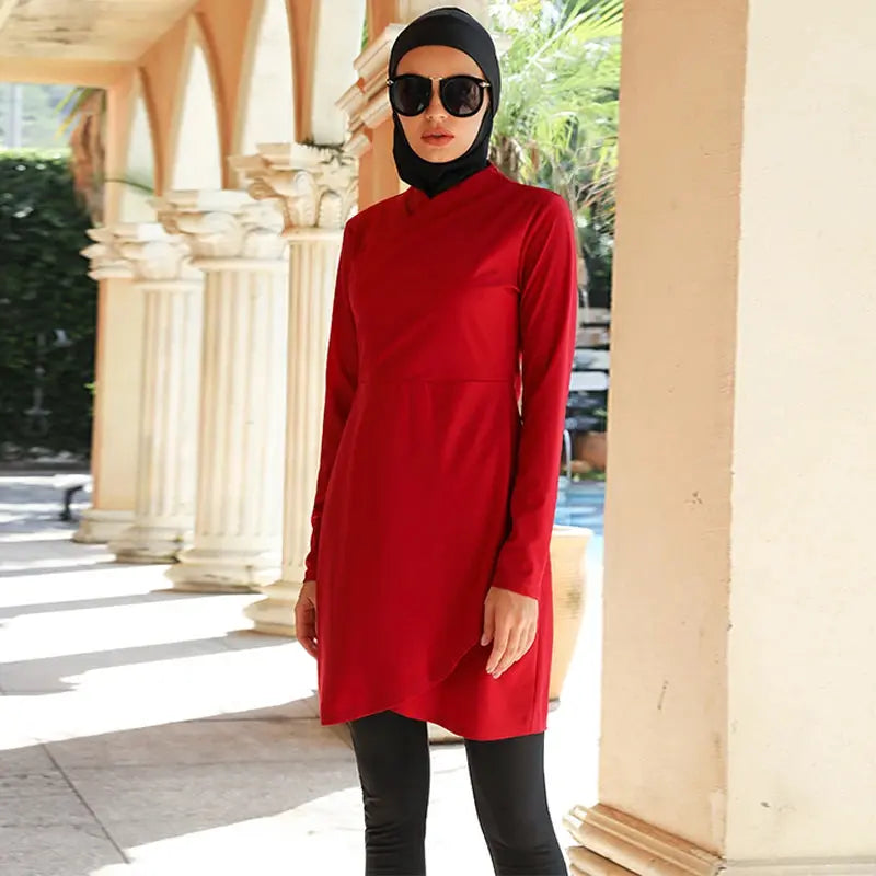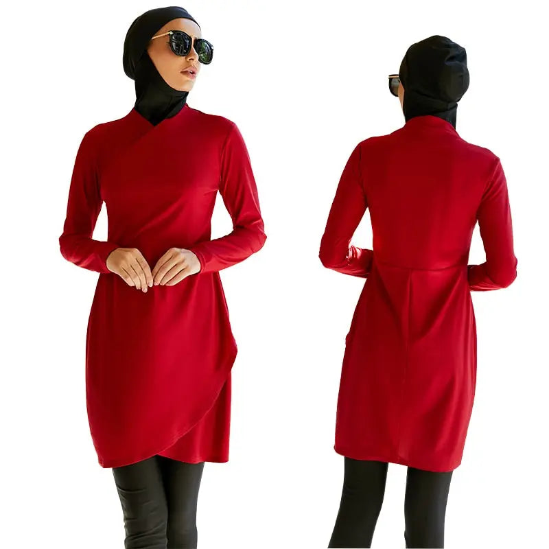 Look no further for a cute hijab swimsuit in Red Burkini for your beach days! Elegant Hijab Swimsuit's 3pcs is the be-all and end-all of Muslim swimwear.