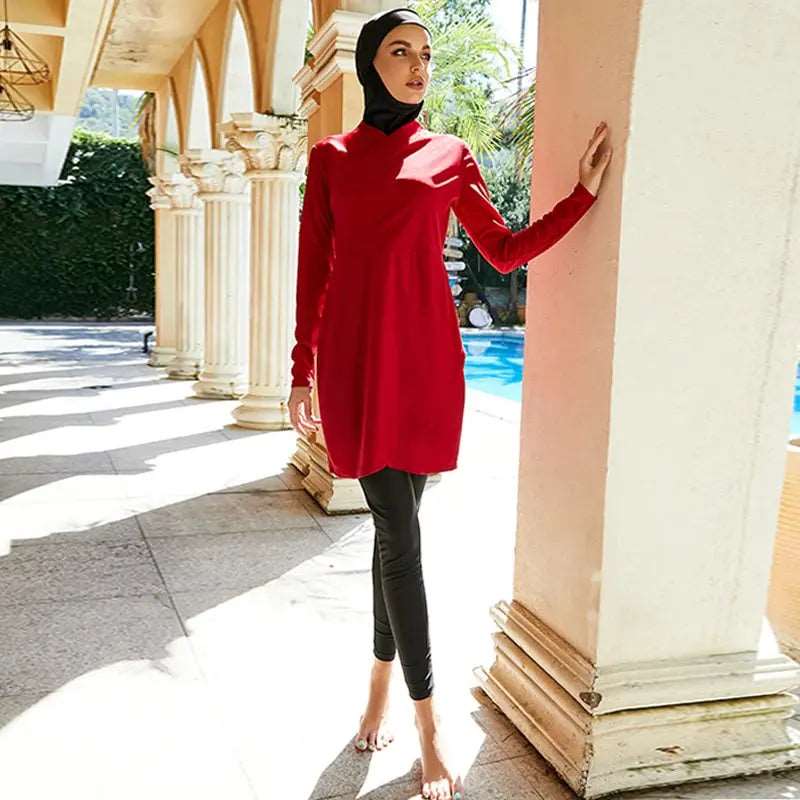Elegant Hijab Swimsuit - The Ultimate Muslim Red Burkini 3pcs