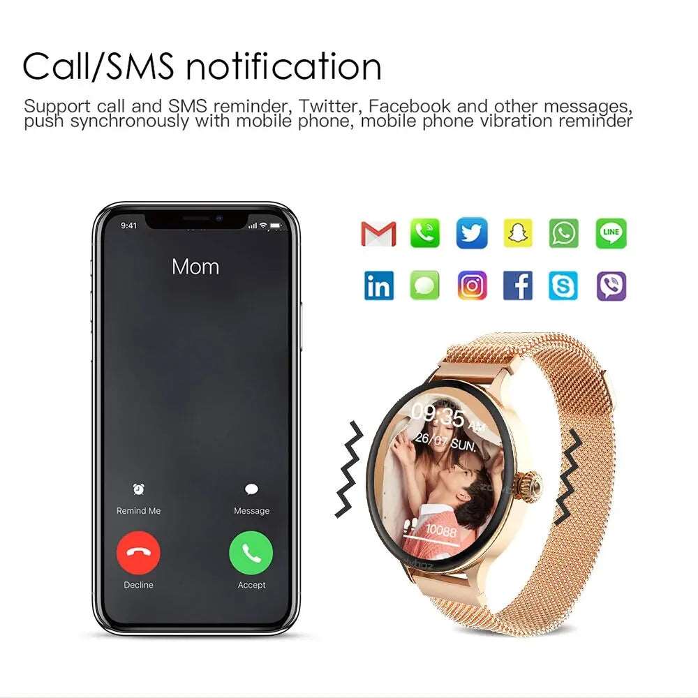 Overall, this fashion smartwatch is a multifunctional device suitable for fitness enthusiasts who want to track their activities and monitor their health. Additionally, it is also suitable for anyone who wants to stay connected to their phone and receive notifications without having to take out their phone.