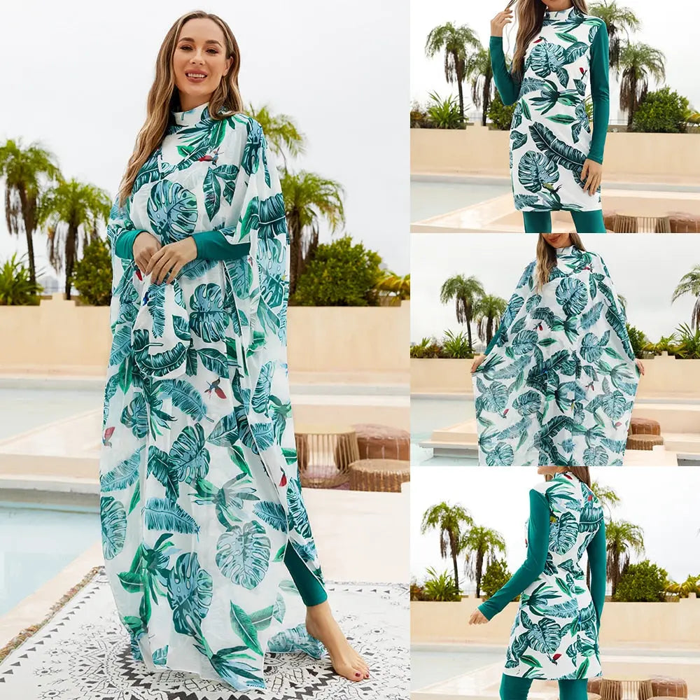 Discover our stylish and modest swimwear women's Modest Patchwork 4pcs Hijab Cover-Ups, the perfect choice for women seeking Islamic burkinis that combine modesty, comfort, and style. This 4-piece swimsuit set is designed to provide full coverage and adherence to Islamic dress codes while ensuring a fashionable and comfortable swimwear experience.